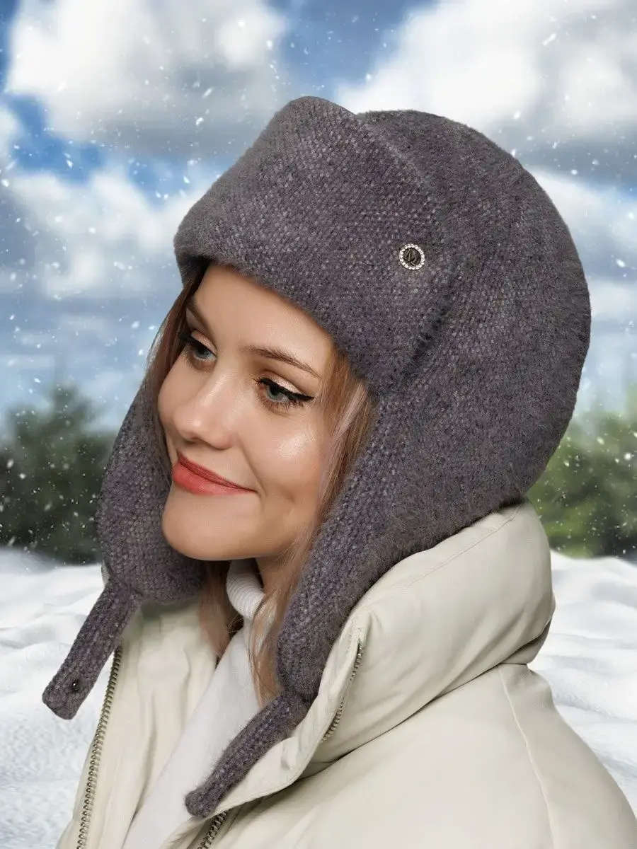 Шапка ушанка зимняя вязаная на флисе — это идеальный аксессуар для создания стильных и тёплых образов в холодное время года. Изготовленная из мягкой шерсти без акрила, она не только не колется, но и эффектно дополняет ваш лук, защищая от холода и ветра. Пряжа с эффектом ангоры гарантирует отсутствие ворса на одежде, что делает её практичным выбором для повседневной носки. Головной убор можно носить двумя способами: зафиксировать ушки под подбородком с помощью кнопки или скрепить их сзади. Для лучшего прилегания к голове предусмотрена резинка на задней части изделия.
